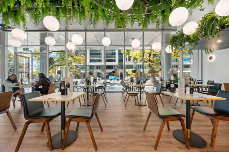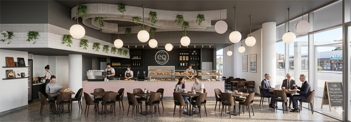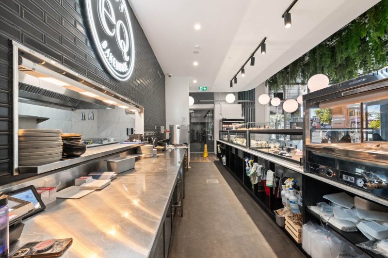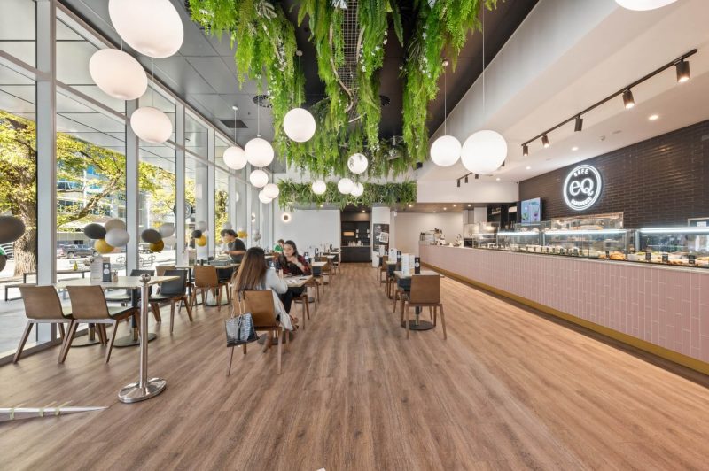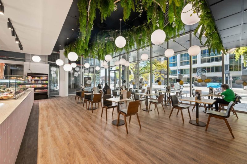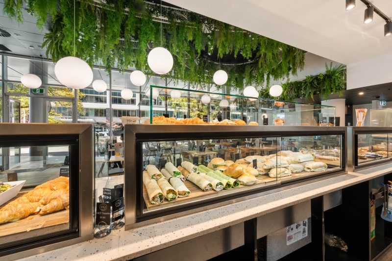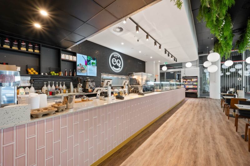 | The eq bakehouse café in the canberra cbd was designed as a lively, welcoming hub for the surrounding office community. set within a commercial office building, the fit out creates an open, approachable space that seamlessly supports everything from morning coffees to informal work catch ups. The interior blends eq bakehouse’s signature warmth with a modern edge—blush tiled counters, marble look table tops and timber seating are paired with soft globe pendants and suspended greenery to bring energy and personality into the workplace setting. a strong, linear service counter keeps things moving during the weekday rush while anchoring the space visually. Delivered alongside a concurrent fit out for another eq bakehouse location in a nearby shopping mall, the project demonstrates a consistent brand identity adapted to different contexts. trading successfully for over three years, the café has become a go to favourite for nearby office workers—proof that great design can turn a daily coffee stop into a destination.