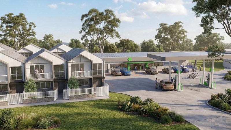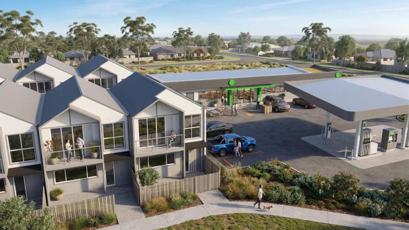 | For a site along the highway, historically used as a service station and camping ground, KnD have projected re the activation though a mixed-use development. Bing flanked by the highway and small scale residential in a coastal setting the site is to be split into residential and convenience retail/fast food uses. | |